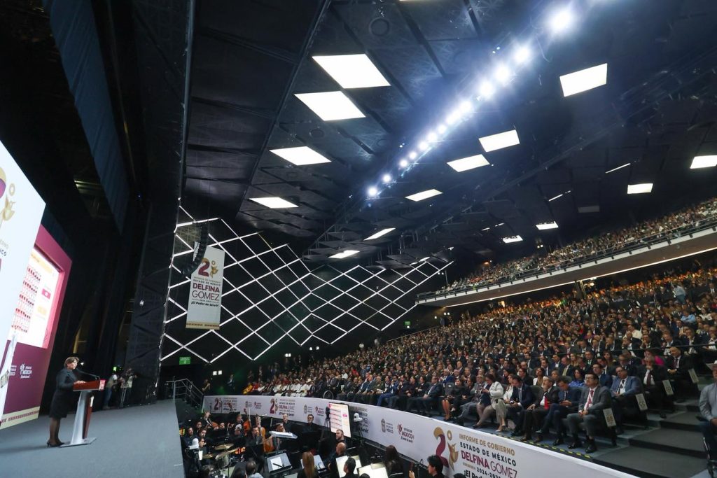 Con un mensaje firme y orientado al bienestar colectivo, la gobernadora del Estado de México, Delfina Gómez Álvarez, presentó su Segundo Informe de Labores, primero ante el Congreso local y posteriormente en un acto ciudadano en el Teatro Morelos, donde enfatizó los principales logros de su administración en reactivación