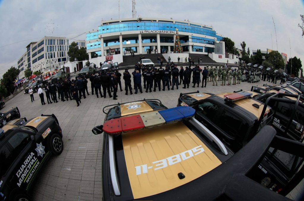 El alcalde en su Primer Informe de Resultados detalló que, para lograr el objetivo de una mejor seguridad para las y los naucalpenses, se modernizó la infraestructura y operación, reorganizó territorialmente la vigilancia con una nueva sectorización e incorporación de 250 nuevas patrullas, 360 chalecos balísticos nivel IV y recursos tecnológicos como 6 drones de alta tecnología para mejorar la eficiencia operativa.