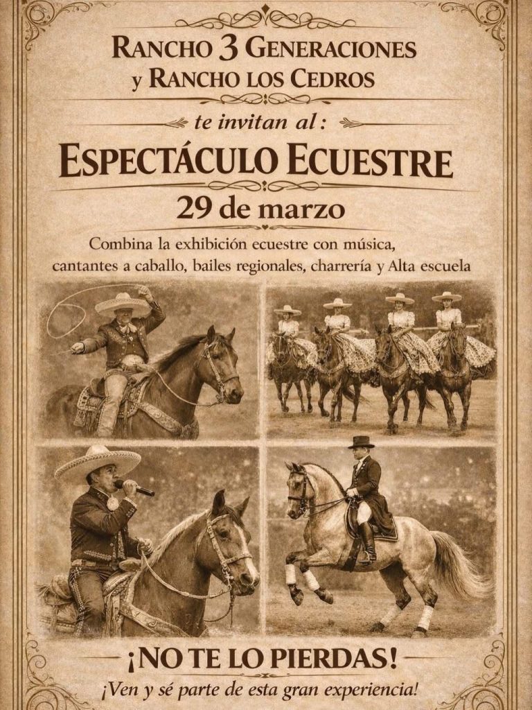 TEXCOCO — Los ranchos 3 Generaciones y Los Cedros han presentado una cartelera de eventos especializados para la Feria Internacional del Caballo 2026, dedicada exclusivamente a la disciplina y pasión por el mundo ecuestre.