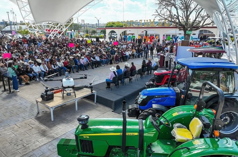 En un evento clave para el fortalecimiento del sector agropecuario del Estado de México, la gobernadora Delfina Gómez Álvarez encabezó la entrega de 21 tractores y 23 drones a productores de 37 municipios, como parte de los esfuerzos para modernizar las prácticas agrícolas y apoyar la productividad del campo mexiquense.